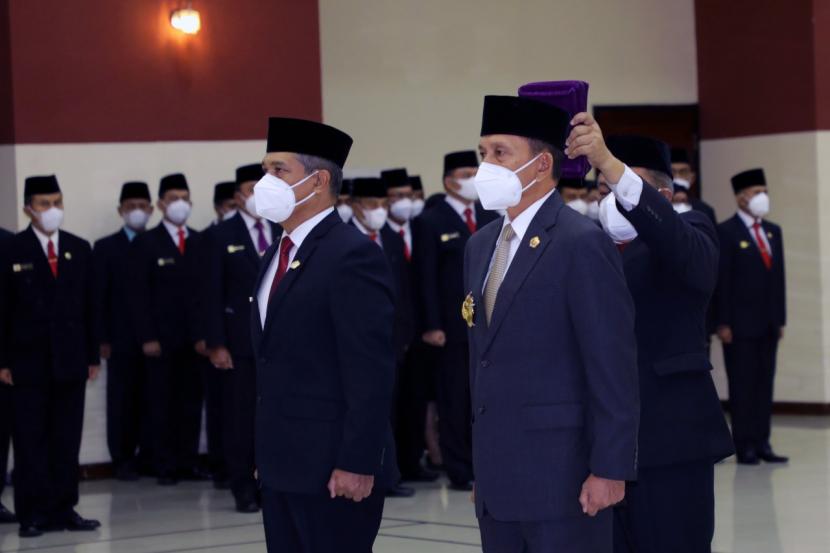 JAKARTA — Gubernur Lembaga Ketahanan Nasional (Lemhannas), Andi Widjajanto melantik Mayjen Mohamad Sabrar Fadhilah sebagai wakil gubernur (wagub) Lemhannas menggantikan Marsdya Wieko Syofyan di Ruang Dwiwarna Purwa Lemhannas, Jakarta Pusat pada Rabu (27/4/2022). Sabrar sebelumnya menjabat sebagai Tenaga Ahli Pengkaji Bidang Politik Lemhannas. Adapun Wieko akan memasuki masa pensiun dari TNI AU.