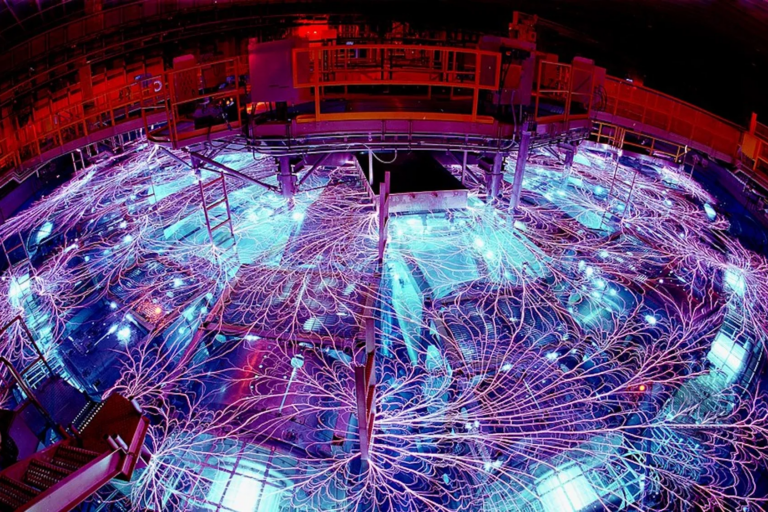 Mesin Z terletak di Albuquerque, N.M., dan merupakan bagian dari Program Daya Pulsa, yang dimulai di Laboratorium Nasional Sandia pada tahun 1960-an. Daya pulsa adalah teknologi yang mengonsentrasikan energi listrik dan mengubahnya menjadi pulsa pendek dengan daya yang sangat besar, yang kemudian digunakan untuk menghasilkan sinar-X dan sinar gamma. | foto oleh Randy Montoya / Laboratorium Nasional Sandia