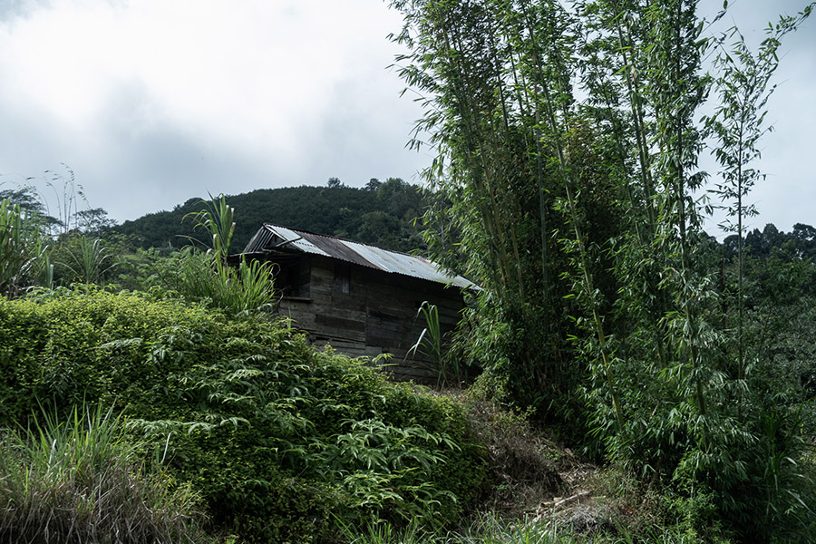 Rumah warga yang ditinggalkan di sekitar jalur perlintasan satwa bakal agung di Desa Agung Lawangan. Foto: Nopri Ismi/Mongabay Indonesia