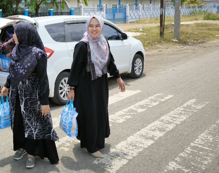 Kepala SMKN 5 Banda Aceh, Herlina Dewi saat membersamai siswa melakukan aksi sosial UBI RAMBAT. (Dok. Pribadi)