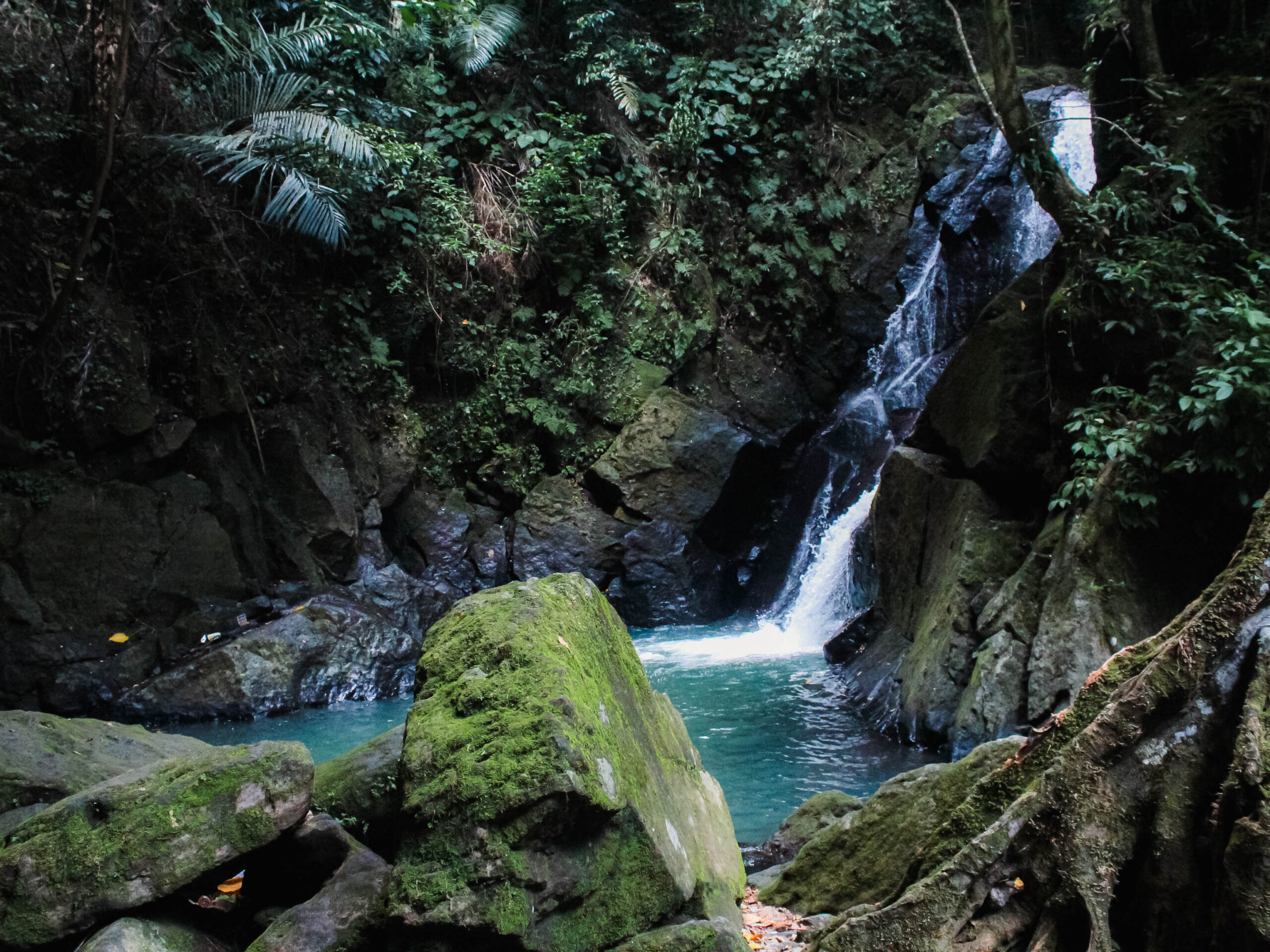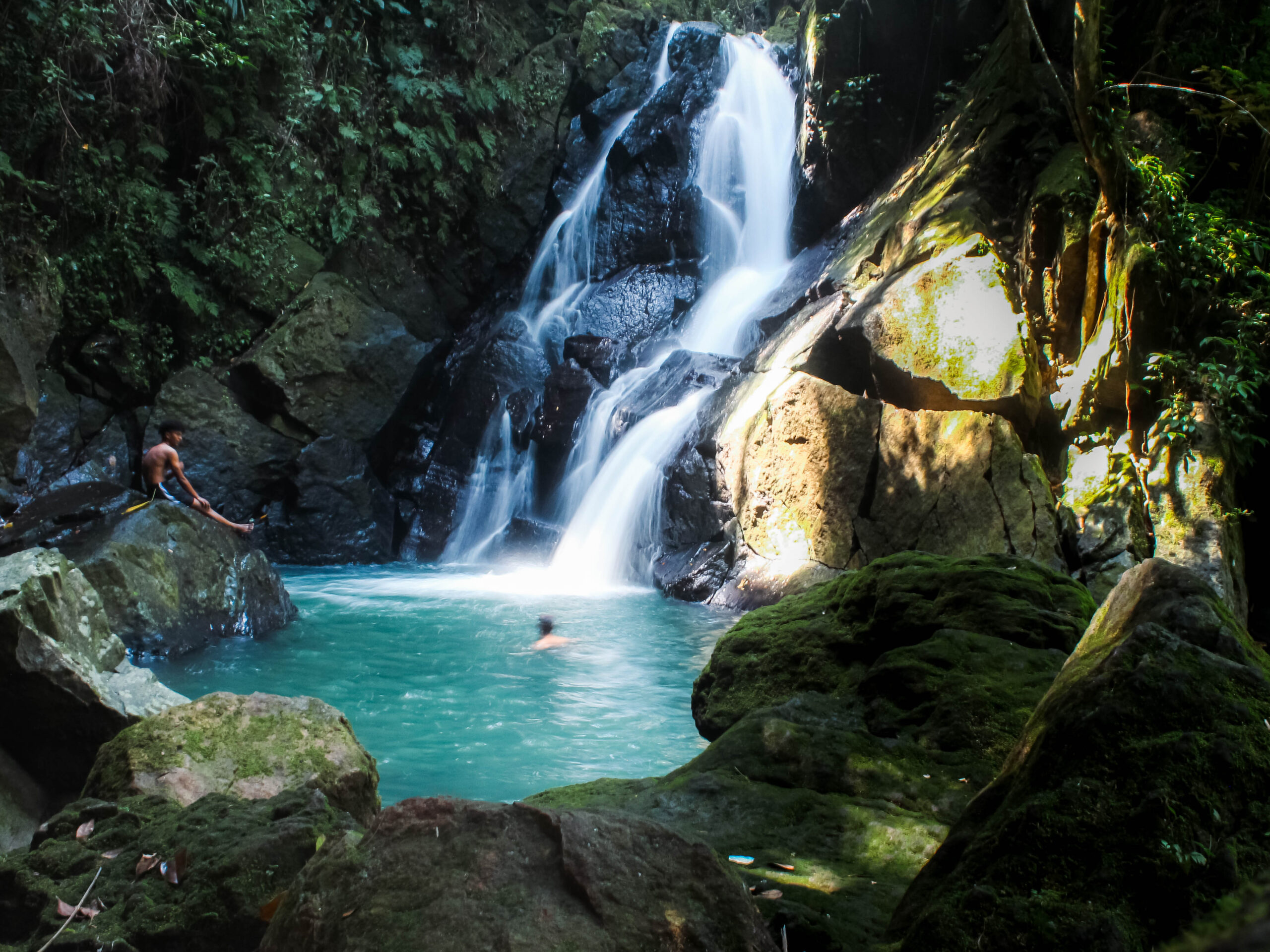 Air Terjun Pria Laot memiliki ketinggian 15 meter dan kedalaman air 1 hingga 1,5 meter, dihiasi dengan bebatuan sekeliling kolam alami yang dibentuk dari tumpahan airnya. Foto: Mardili/Lensakita.com