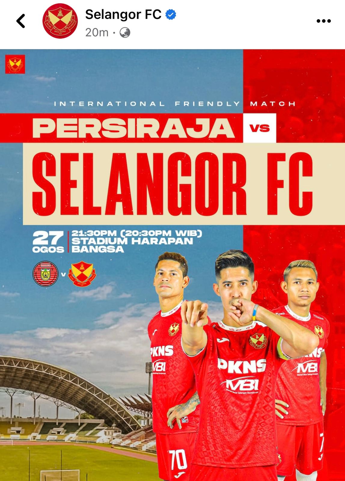 Menurutnya, Selangor FC bertolak ke Banda Aceh dengan membawa sekitar 22 pemain untuk laga persahabatan melawan Persiraja.