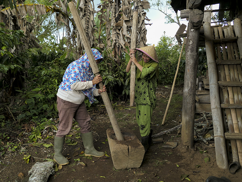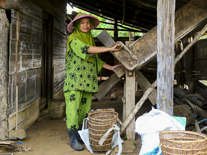 Sebagian besar petani kopi Semende masih menggunakan peralatan tradisional yang ramah lingkungan [non BBM] dalam memisahkan kulit kopi. Foto: Muhammad Tohir/Mongabay Indonesia