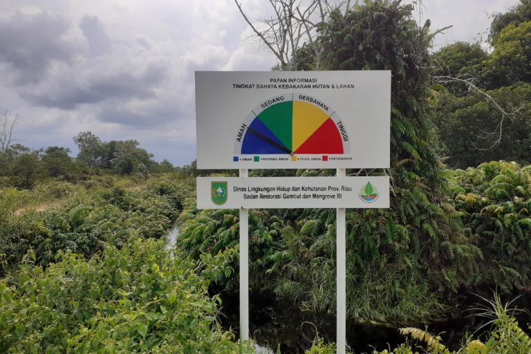 Papan informasi pemantau tingkat rawan kebakaran di Pelintung, Dumai, Riau. Foto: Suryadi / Mongabay Indonesia