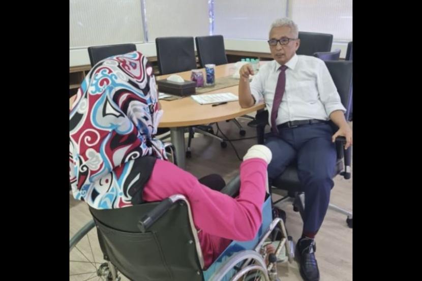 Duta Besar LBBP RI untuk Malaysia Hermono mendengarkan cerita Lina di KBRI Kuala Lumpur, Malaysia, Kamis (24/8/2023).