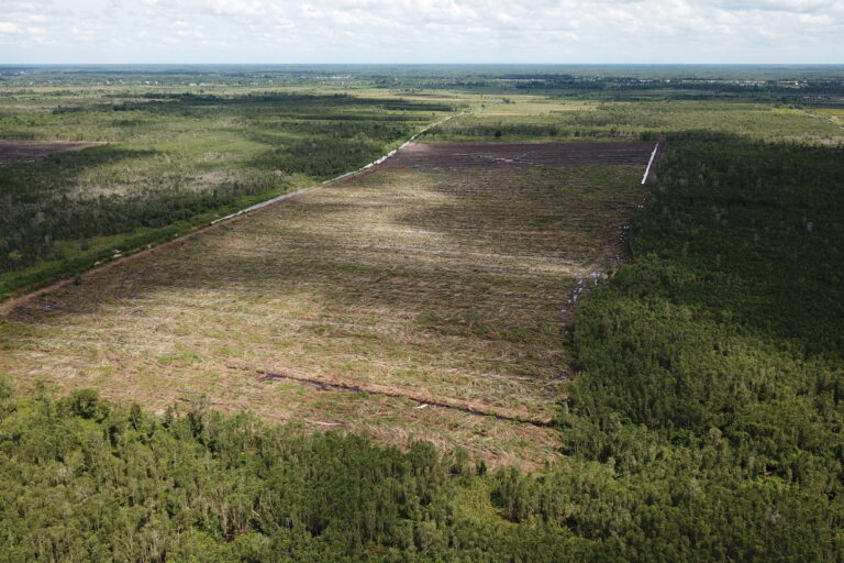 Lahan sudah dibersihkan untuk food estate dan energi di Merauke, Papua. Proyek model ini malah berisiko hilangkan sumber pangan dan sumber segala masyarakat adat/lokal. Foto: Yayasan Pusaka
