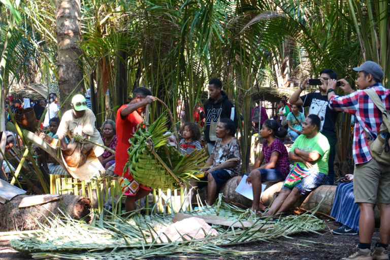 Pengolahan sagu. Sagu, salah satu jenis pangan lokal Papua. Sayangnya, dengan begitu banyak bisnis skala besar masuk, hutan-hutan sagu tergusur untuk berbagai kepentingan. Proyek proyek pangan dan energi di Merauke, Papua, makin mengancam salah satu sumber makanan pokok Orang Papua ini. Foto: Asrida Elisabeth/ Mongabay Indonesia