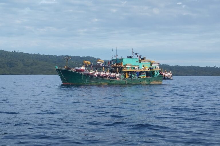 Sebuah kapal berukuran lebihj dari 30 GT tengah berada di zona nelayan tradisional di Desa Bere-bere, Morotai, Maluku Utara (Malut). Foto: Dokumentasi nelayan.