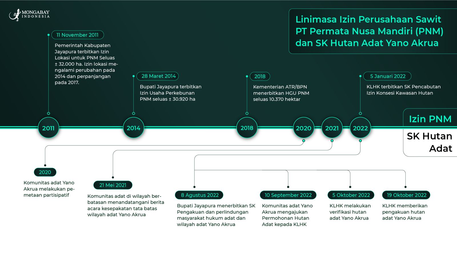 • Bupati Jayapura menerbitkan Surat Keputusan (SK) Pengakuan Wilayah Adat Yano pada 2022. Kemudian tahun sama dapat penetapan hutan adat dari Kementerian Lingkungan Hidup dan Kehutanan. Masyarakat Yano Akrua berpegang pada SK hutan adat akan tetap mempertahankan hutan dan mengelola jadi ekowisata.