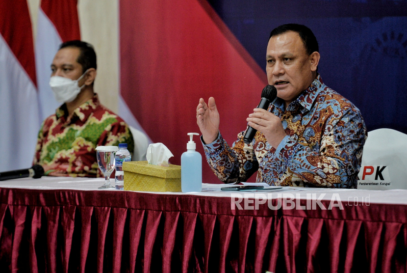 Ketua Komisi Pemberantasan Korupsi (KPK) Firli Bahuri (kanan) didampingi Nurul Ghufron (kiri).