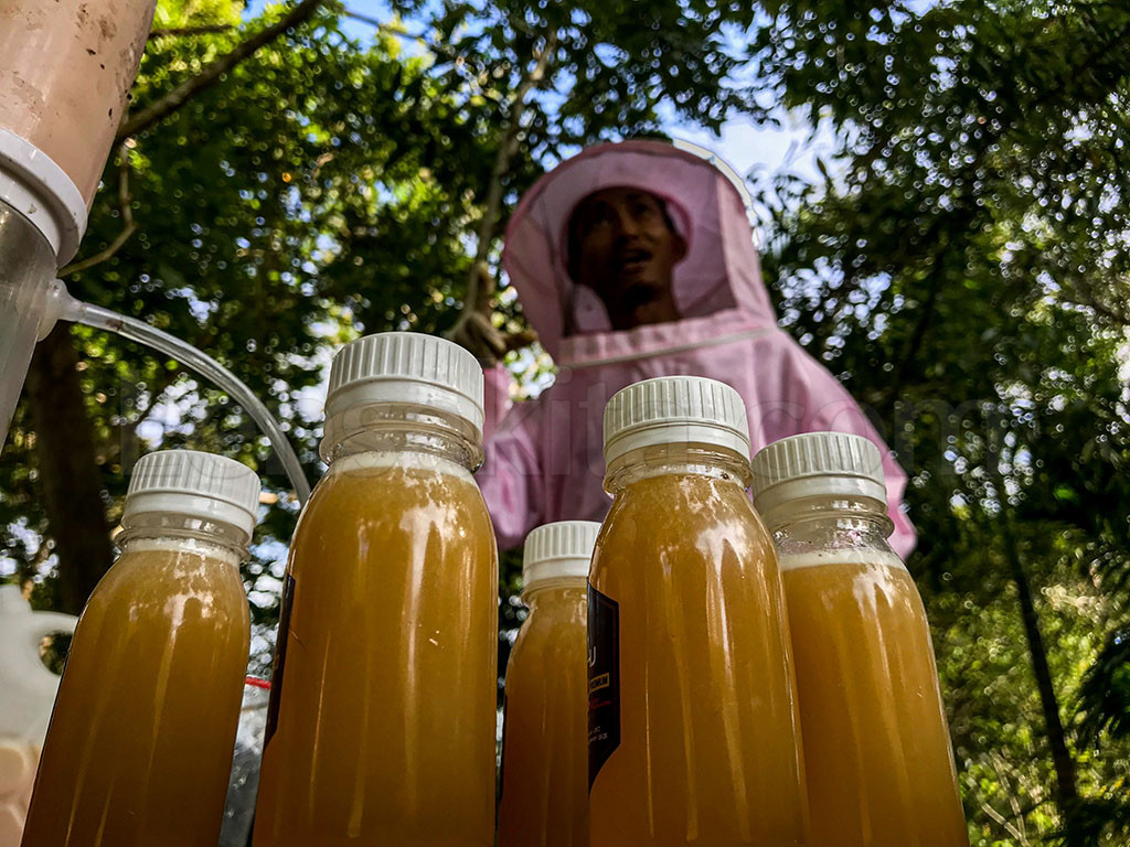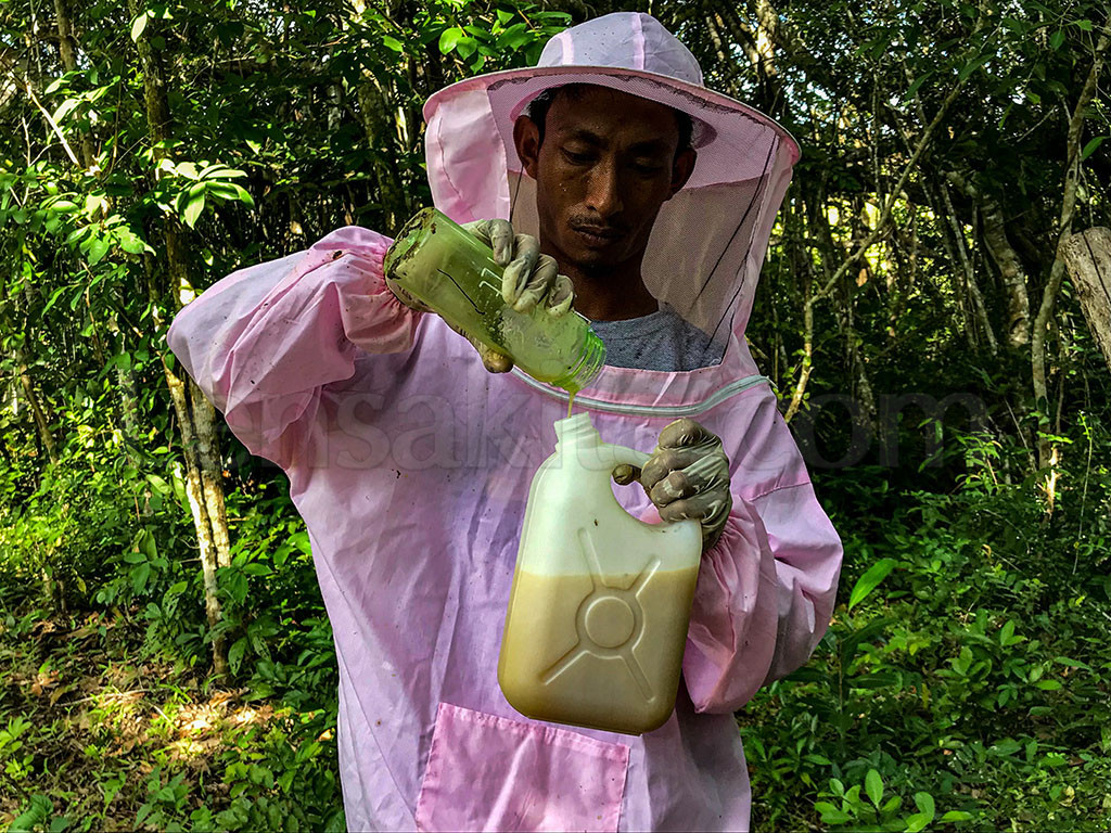 “Kita memanen madu linot ini 1 bulan sekali, walaupun sedikit tetap akan kita ambil karena dapat merangsang madu terus berproduksi dan perbulannya kita biasa memanen kurang lebih 25 liter,” terang Herwan.