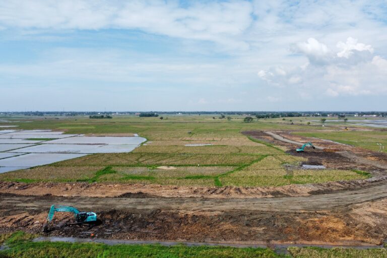 Tak hanya di laut, di daratan pun PIK II juga kuasai lahan-lahan warga seperti kebun dan sawah. Banyak petani menganggur atau beralih kerjaan.