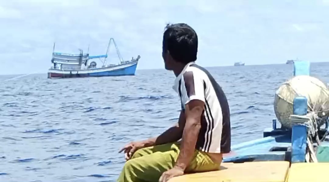 Nelayan Natuna menyaksikan kapal Vietnam mencuri ikan di perairan Laut Natuna Utara pada 13 Agustus 2024. Foto : Tangkapan Layar Video Aliansi Nelayan Natuna