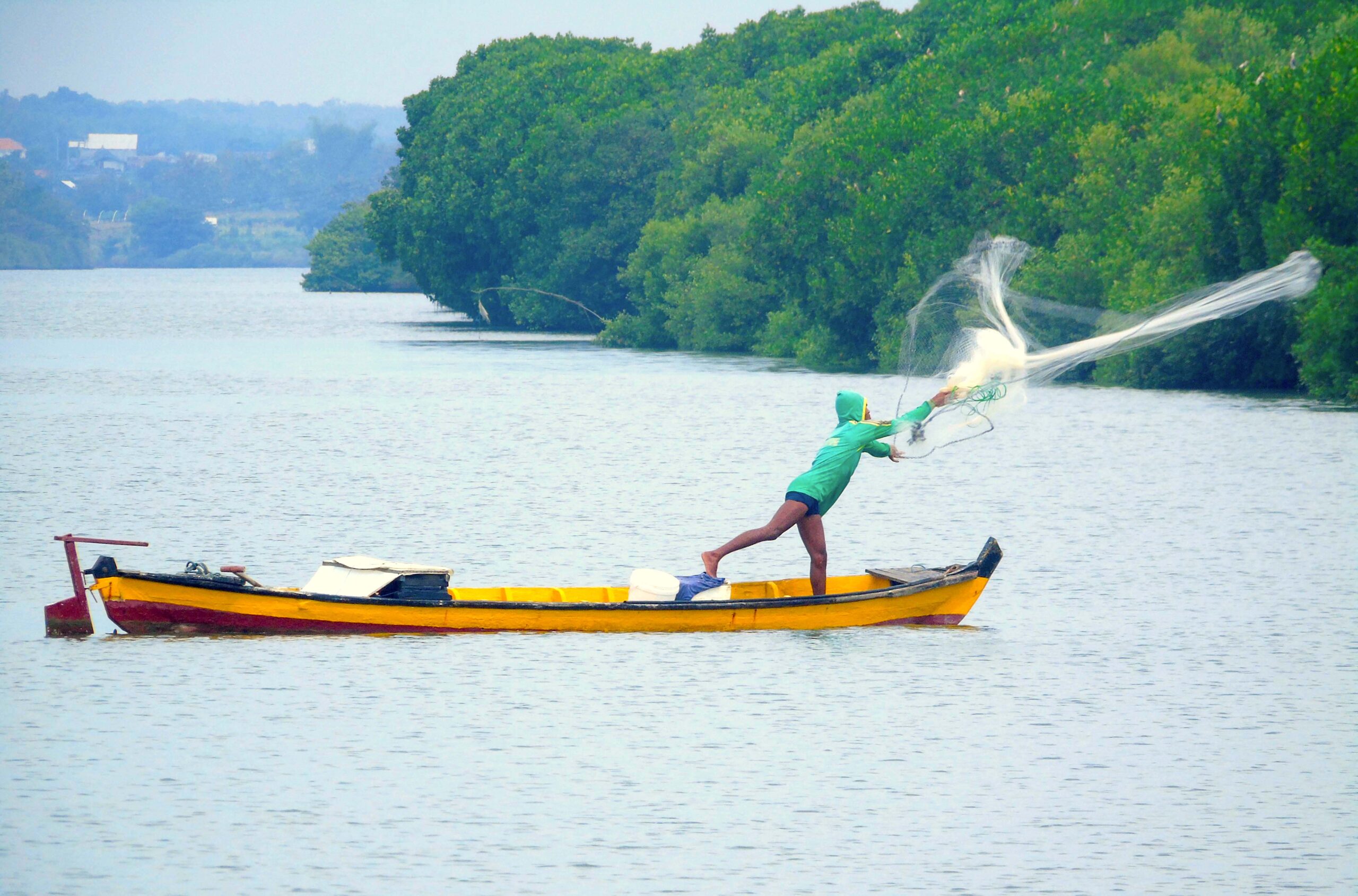 Nelayan menjala ikan di kawasan hutan mangrove. Bagi nelayan kecil, keberadaan hutan mangrove ibarat ‘brankas’ yang menyimpan harta untuk keberlangsungan hidupnya. Foto: Falahi Mubarok/Mongabay Indonesia
