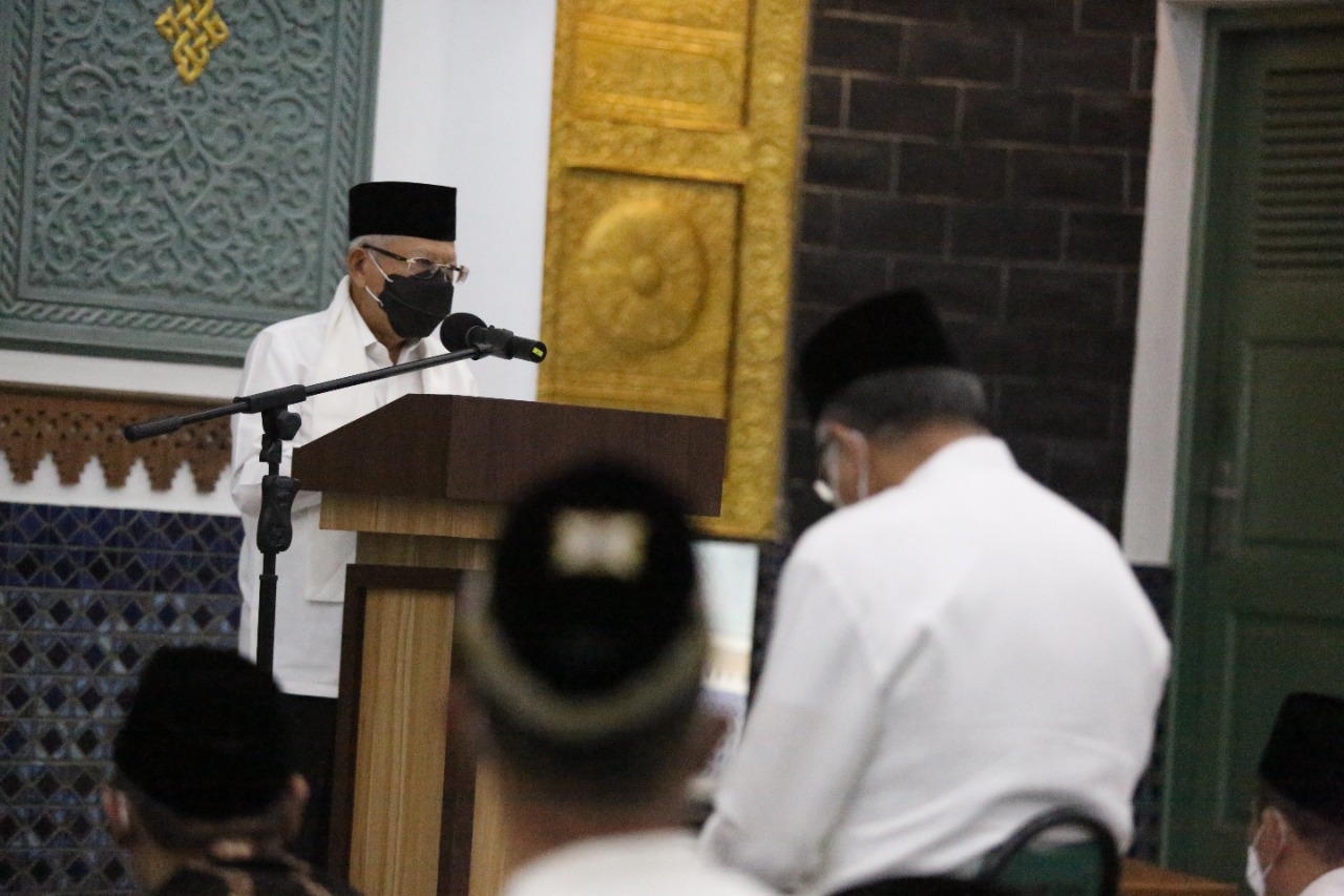 “Selanjutnya dengan hikmah bulan Ramadhan ini marilah kita tingkatkan keimanan dan ketaqwaan kepada Allah SWT dengan melakukan amalan-amalan seperti shalat tarawih, membaca Al Qur’an, bersedekah dan i’tiqaf, karena tingkat kemuliaan seseorang disisi Allah adalah orang yang bertaqwa,” ucap Wapres Ma’ruf Amin.