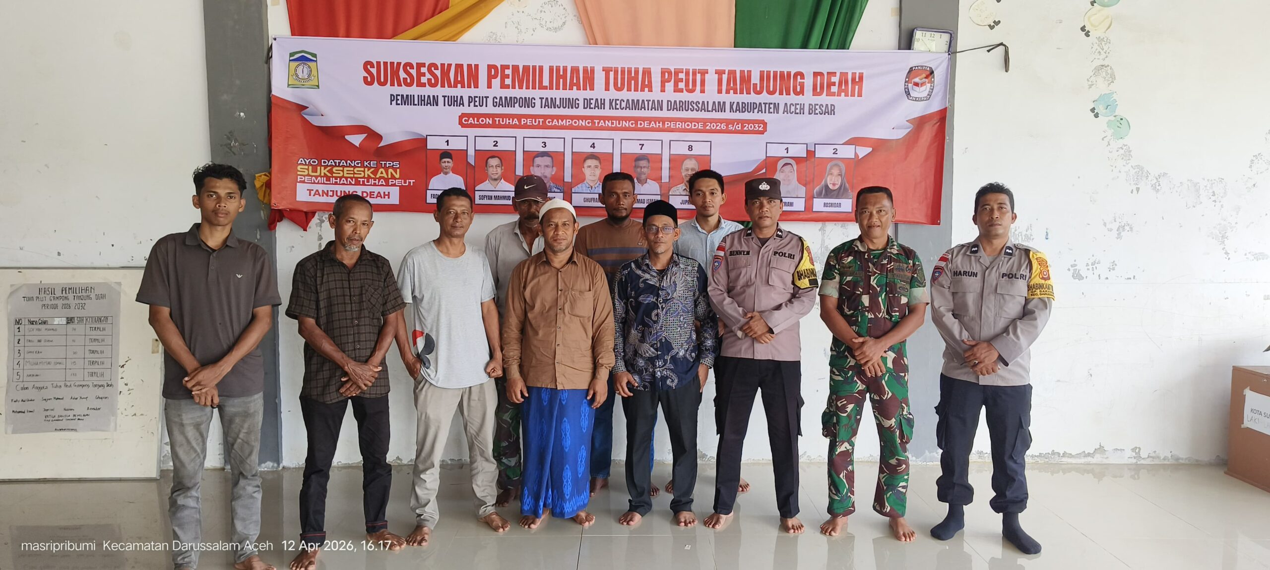 Aceh Besar – Pemerintah Gampong Tanjung Deah, Kecamatan Darussalam, Aceh Besar, sukses melaksanakan pemilihan anggota Tuha Peut untuk periode 2026–2032 pada Minggu (12/4/2026). Proses pemilihan berlangsung tertib, aman, dan demokratis dengan partisipasi aktif masyarakat setempat.