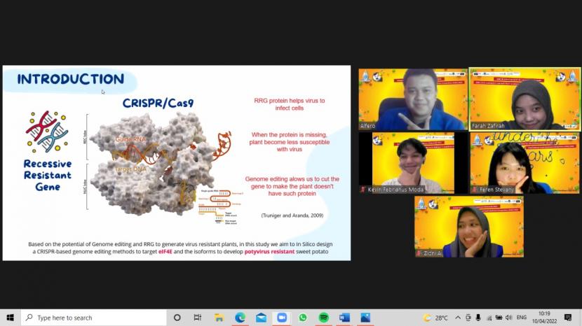 Karena itu perlu dilakukan penelitian terkait pengembangan ubi jalar tahan virus berbasis genome editing menggunakan pendekatan bioinformatika. Kevin pun menerangkan keunggulan dari proyek riset tim Biotek Universitas Esa Unggul (UEU) ialah tiga bidang biologi molekuler sekaligus.