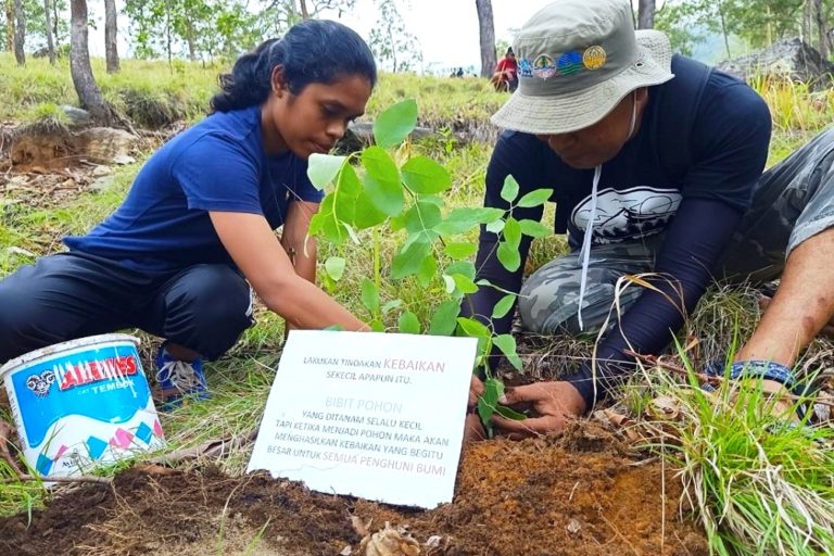 Penanaman anakan pohon Ampupu oleh UPT KPH Sikka melibatkan berbagai kelompok anak muda di kawasan hutan lindung Desa Egon Buluk, Kecamatan Waigete, Kabupaten Sikka, NTT. Foto : Ebed de Rosary/Mongabay Indonesia