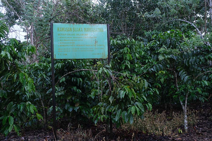 Tanda kawasan SM Gumay Pasemah yang berada di kebun kopi. Foto: Nopri Ismi/Mongabay Indonesia