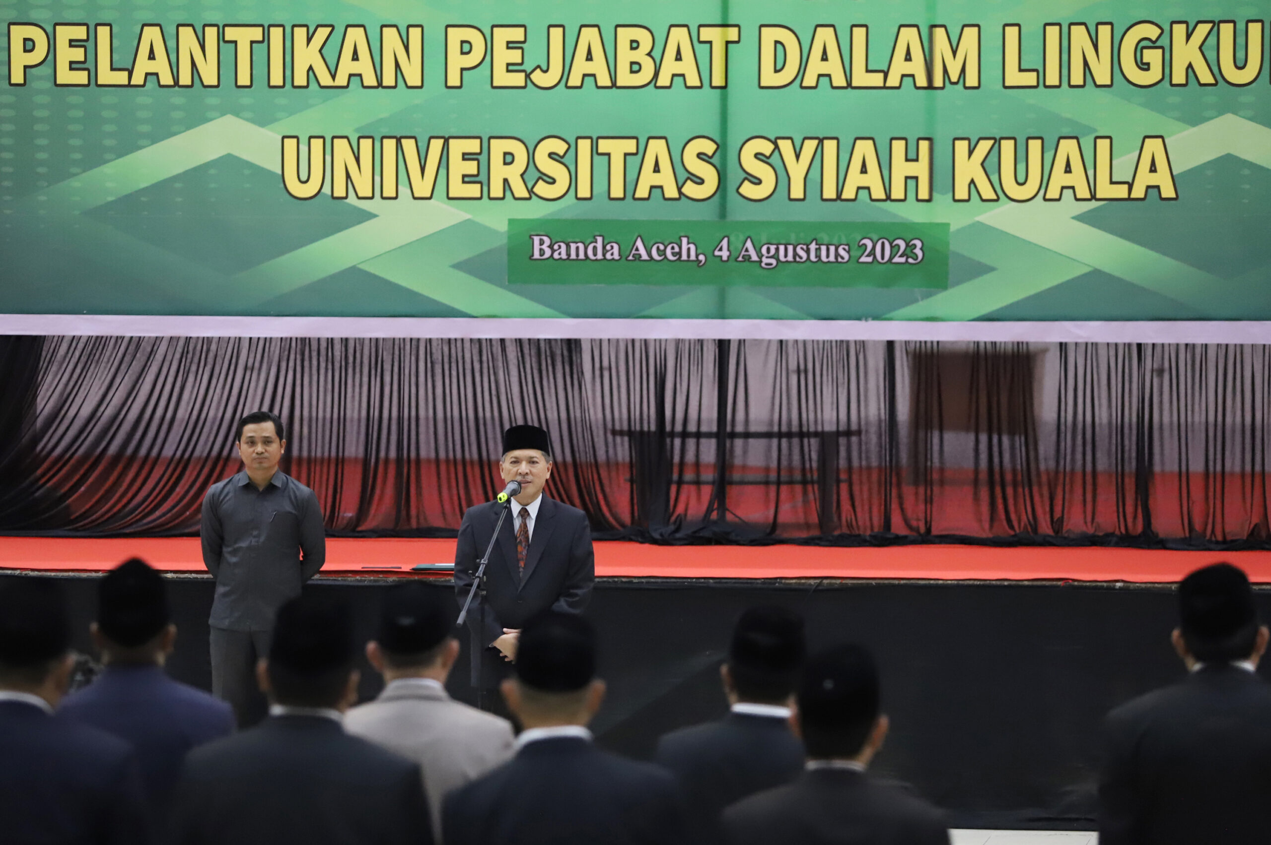 Rektor Universitas Syiah Kuala (USK) Profesor Marwan, melantik 16 pejabat di lingkup USK. Foto: ist