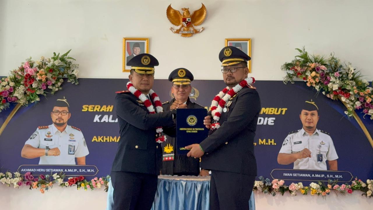 Blangpidie – Lembaga Pemasyarakatan (Lapas) Kelas IIB Blangpidie melaksanakan serah terima jabatan (sertijab) Kepala Lapas pada Senin, (27/4/2026), bertempat di Aula Lapas Blangpidie. Dalam kegiatan tersebut, Kalapas lama Akhmad Heru Setiawan secara resmi menyerahkan tugas dan tanggung jawab kepada Kalapas yang baru, Iwan Setiawan.