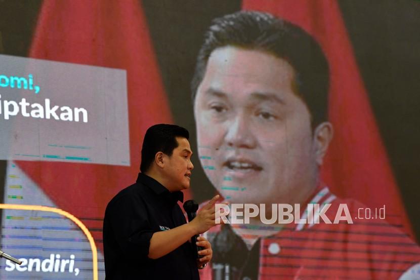 “Ini ditanya apa, kok jawabannya Presiden,” kata Erick. Lalu, Erick melanjutkan sambutannya dengan memberikan pertanyaan tentang cita-cita kepada para santri yang hadir dan berani maju ke depan panggung.