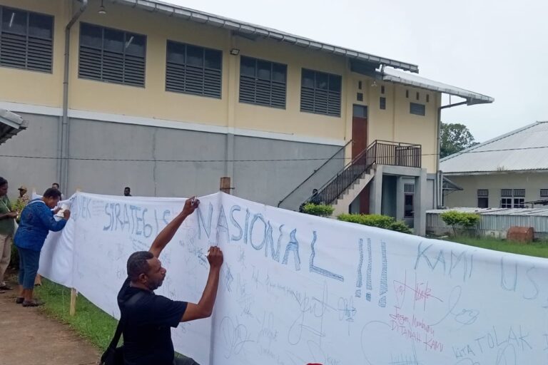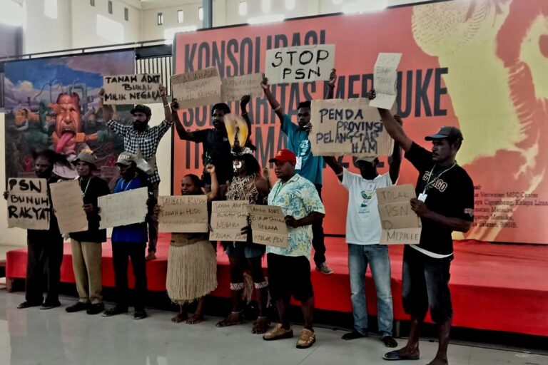 “Kami, Solidaritas Merauke, menuntut penghentian total proyek strategis nasional dan proyek-proyek atas nama kepentingan nasional lainnya yang jelas-jelas mengorbankan rakyat,” kata Monika.