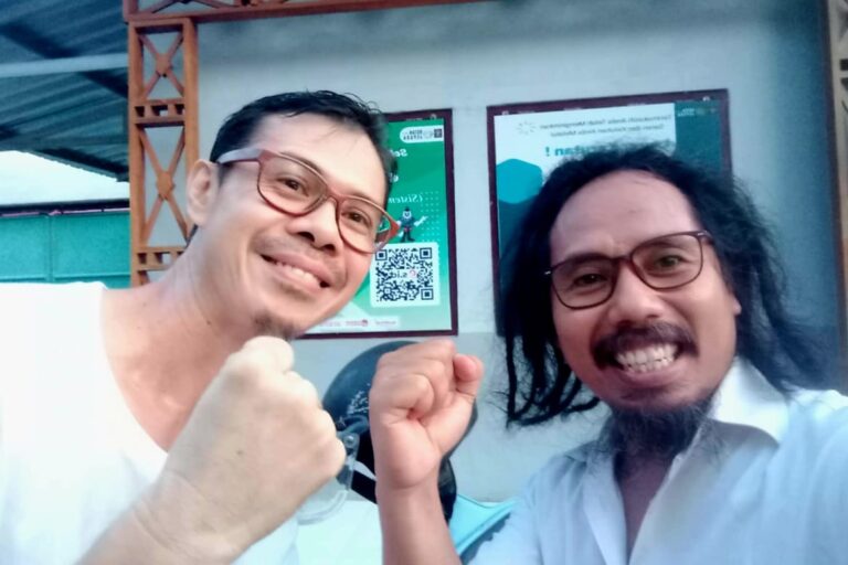Daniel Frits Maurits Tangkilisan (berkaos putih), aktivis lingkungan yang menyuarakan penyelamatan Karimunjawa, bebas dari hukuman setelah bandingnya pengadilan kabulkan. Dokumen foto: Tri Utomo