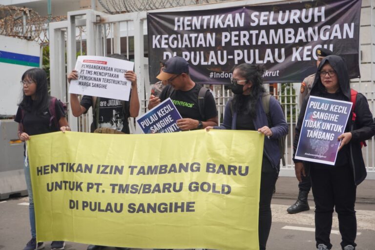Aksi Koalisi Save Sangihe Island di KESDM Jakarta. Foto: SSI