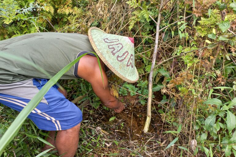 Seorang petani menunjukkan sumber mata air tanah yang tersisa di lahan hijau Desa Iwul. Foto: Achmad Rizki Muazam/Mongabay Indonesia