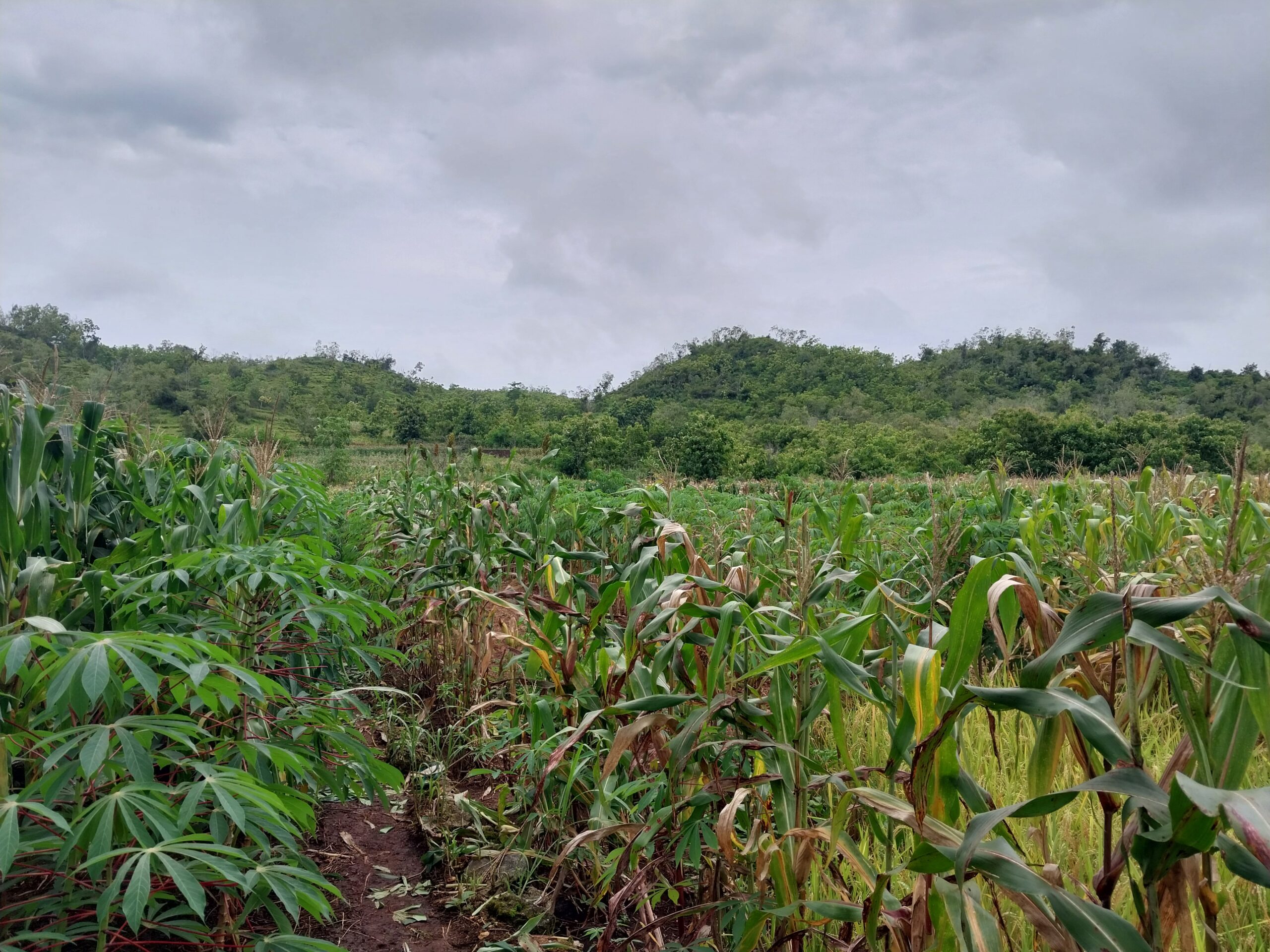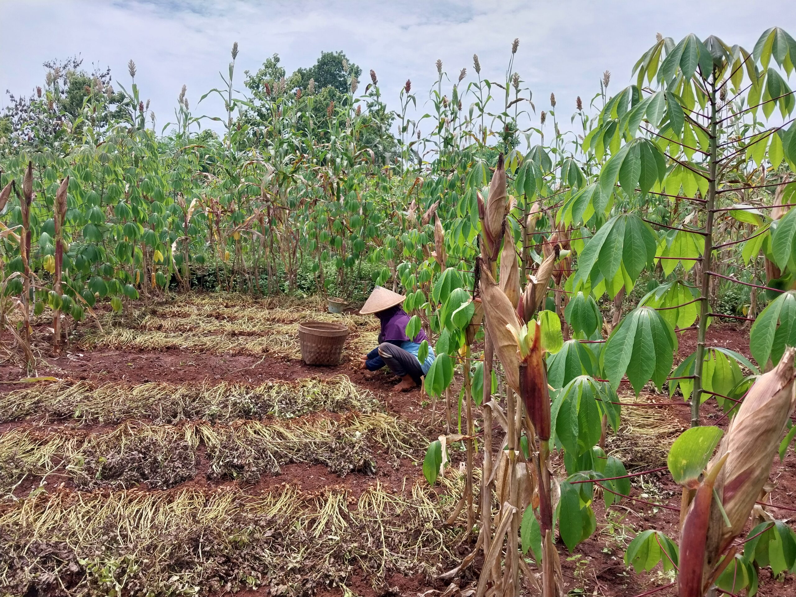Sayup terdengar suara sekelompok laki-laki sedang mengobrol. Rupanya suara itu di antara rimbun tanaman singkong yang sangat subur. Singkong-singkong itu mereka tanam dengan metode tumpangsari. Selain singkong, ada padi, umbi-umbian, dan tanaman lain dalam satu lahan.